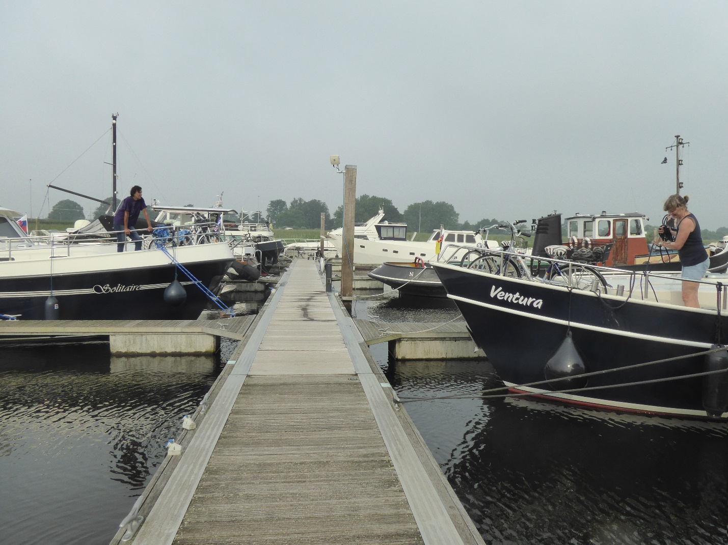 9.00 Hektik im Hafen. Es kommen immer mehr Boote vom Verein Venlo an, die einen freien Liegeplatz suchen. Wir frühstücken schnell, tanken Wasser nach und um