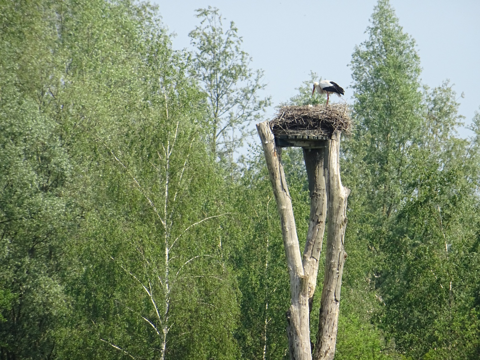 Es ist eine traumhafte Ge gend hier. Mitten auf einer Wiese haben die Einwohner ein Gestell für ein Storchennest gebaut. Und es ist sogar bewohnt.