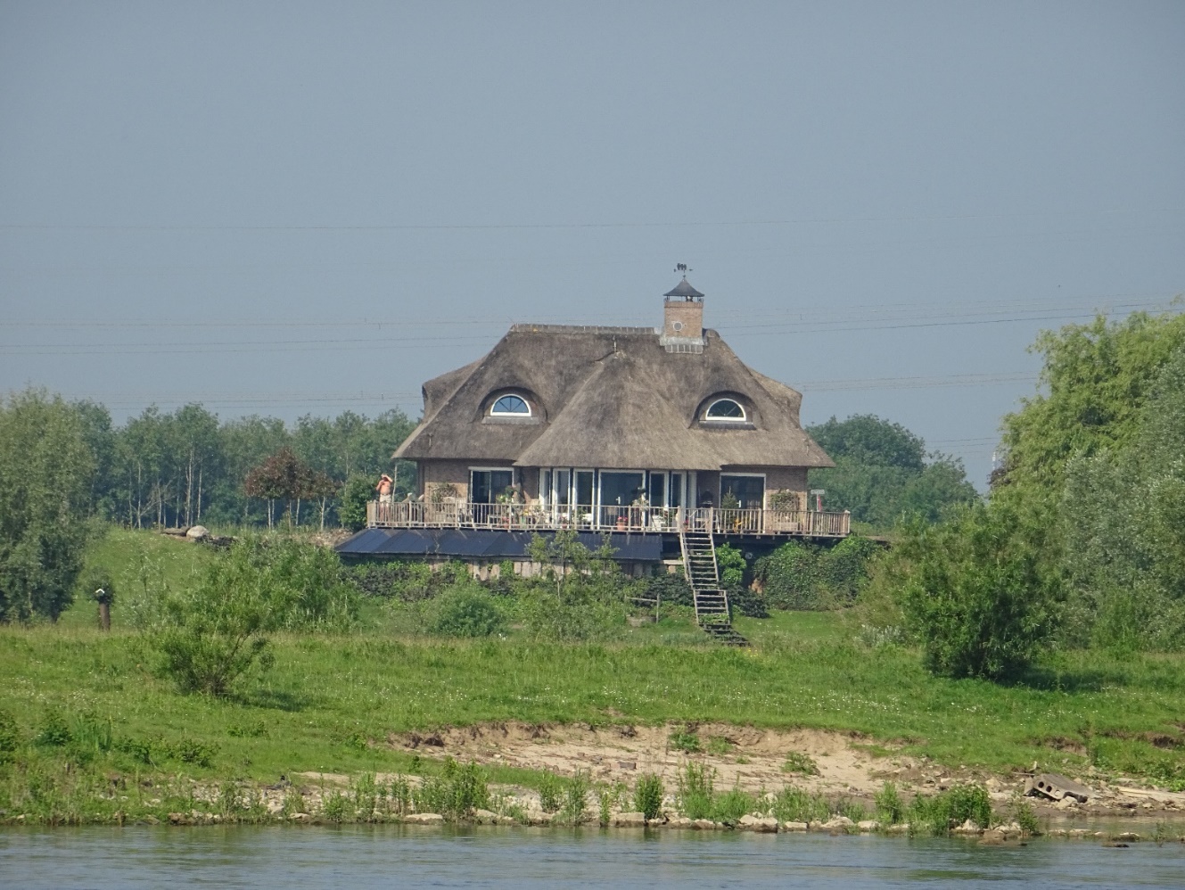 Überall am Ufer wird an der Deicherhöhung gearbeitet. Am Ufer sehen wir auch hier hübsche Häuser. Fast wie in Friesland. Hatten wir so nicht in Erinnerung.