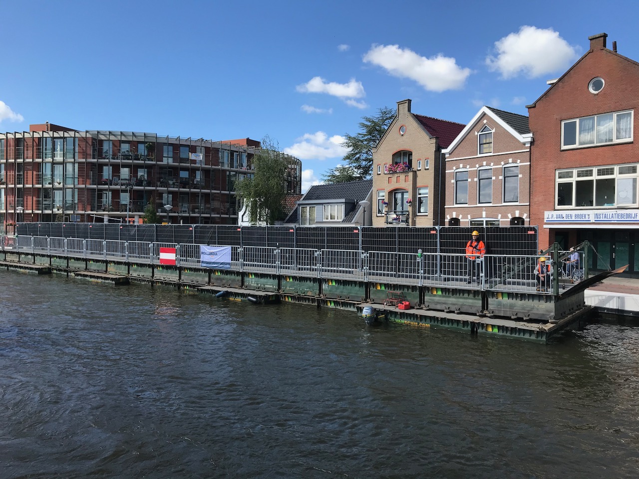Heute haben wir ein Problem: Die Hebebrücke in Boskoop, 10 km vor unserem Tagesziel Gouda, durch die wir auf der Hinfahrt noch problemlos durchfahren konnten, muss wegen Baufälligkeit repariert werden. Für die Dauer der Reparatur wird behelfsweise eine Pontonbrücke für Fußgänger und Radfahrer gelegt, die nur vier mal am Tag für etwa eine halbe Stunde für die Schifffahrt aus dem Weg geräumt wird.