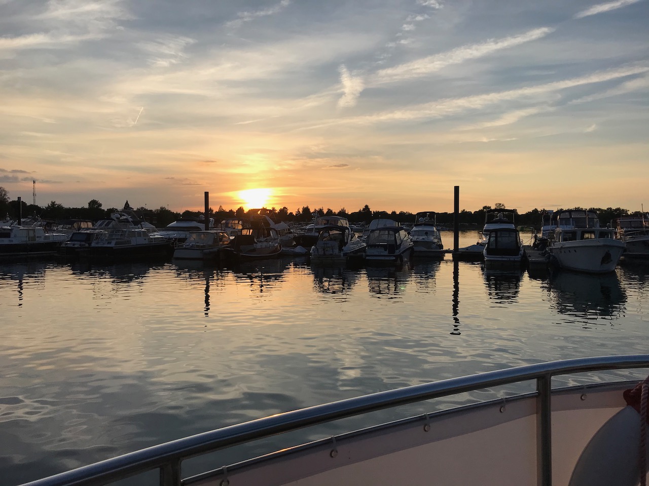 Der sonnige Nachmittag vergeht mit Schwimmen, Lesen und „Suppen“ (so nennt man hier das Paddeln mit dem SUP). Abendessen im Eetcafé „Havenzicht“, und wir haben einen schönen Platz mit Aussicht direkt auf den kleinen Stadthafen von Heusden, wo immer was los ist. Danach fährt Lino zurück und wir sehen uns noch vom Achterdeck aus den Sonnenuntergang an.