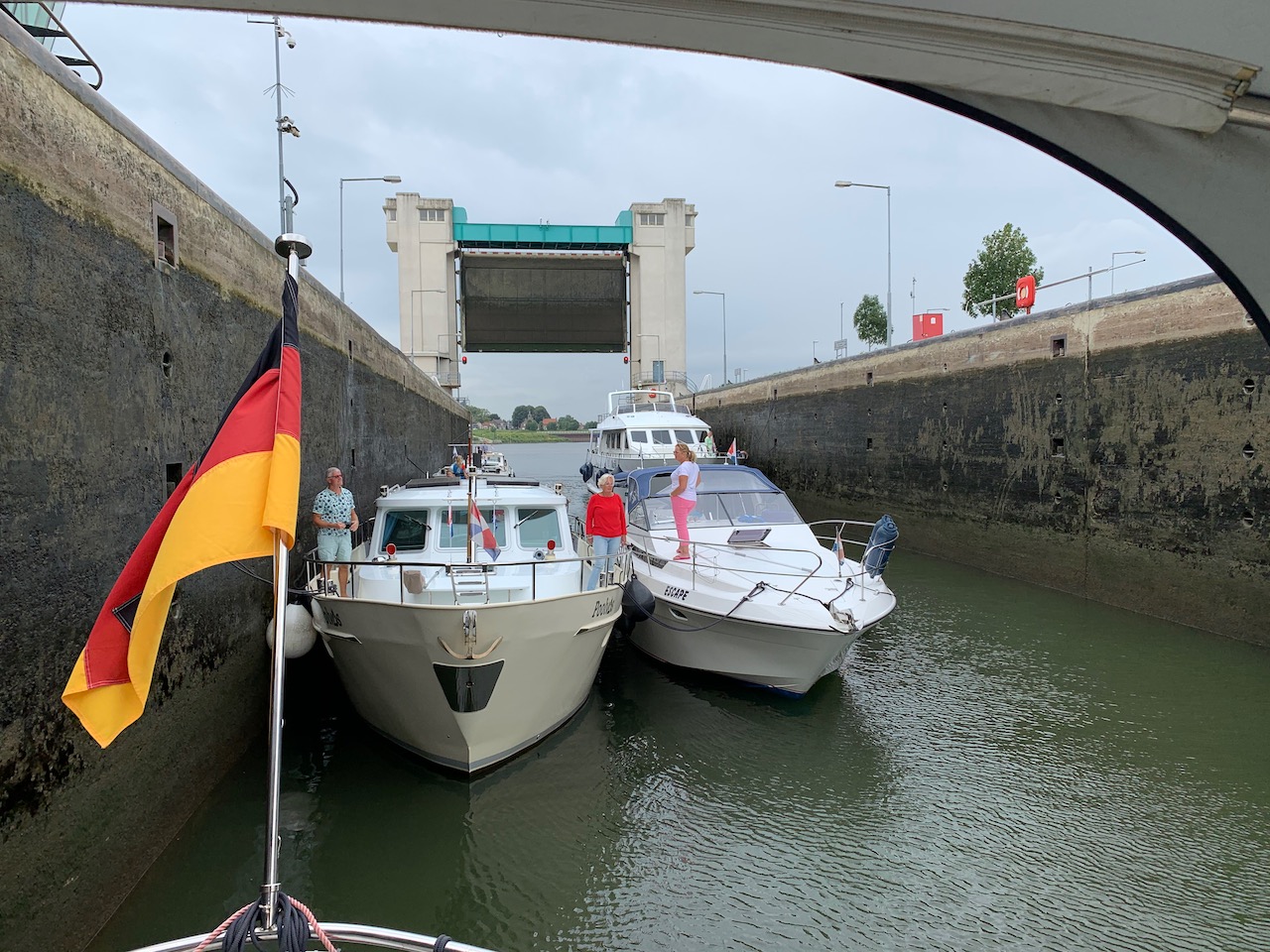 Um 10:00 Uhr geht es dann los, um 10:20 sind wir an der Schleuse Heel, nach kurzer Wartezeit öffnet sich das Tor, wir können einfahren und werden dann ganz alleine geschleust.